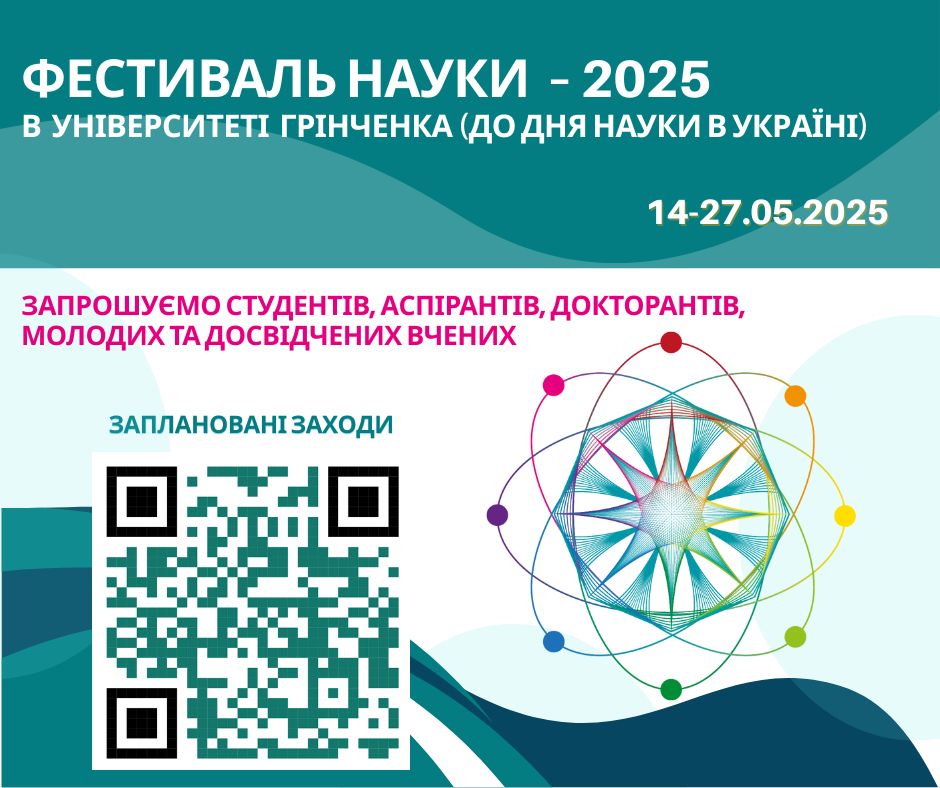 Запрошуємо Вас долучитися до заходів, які відбудуться у рамках Фестивалю науки – 2025 (до Дня науки в Україні) з 14 по 27 травня 2025 року.