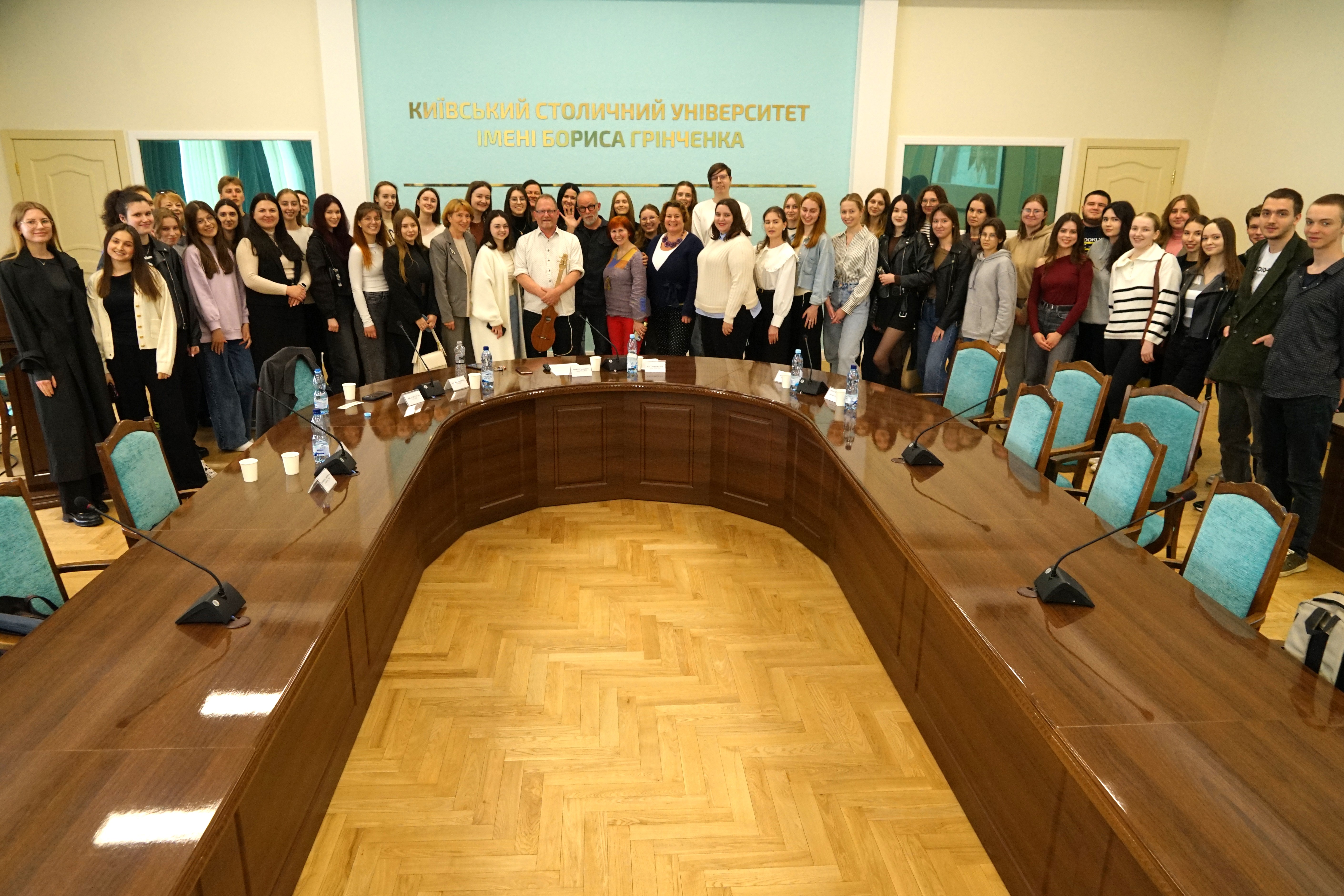 06 травня 2025 року в Університеті Грінченка за ініціативи кафедри світової літератури Факультету української філології, культури і мистецтва відбувся знаковий захід, приурочений до Дня Європи та організований в межах проєкту «Дні Шекспіра в Україні – 2025» від Українського Шекспірівського центру. Із гостьовими лекціями до Університету завітали поважні гості: професор Девід Лівінґстон з Університету Палацького в Оломоуці (Чеська Республіка) та професор Браян Рейнольдс із Каліфорнійського університету в Ірвайні (США).