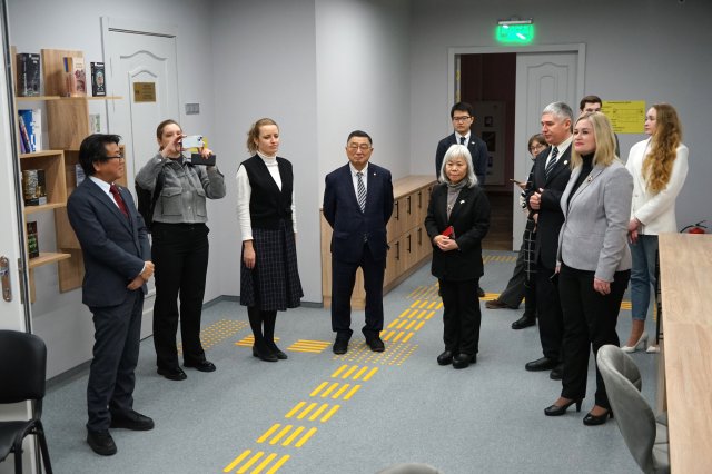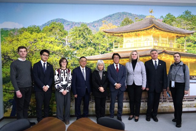 Гостей зустрічали проректор з наукової роботи та міжнародної діяльності, голова Вченої ради Університету Наталія Віннікова, в. о. декана Факультету східних мов Кан Ден Сік, завідувач кафедри японської мови і перекладу Костянтин Комісаров і завідувач НДЛ цифровізації освіти Оксана Буйницька.