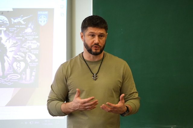 Спікером заходу виступив Андрій Омельченко - керівник ГО «Центр підтримки “АТЛАНТ”», психолог, бізнес-тренер міжнародної кваліфікації та сертифікований фахівець із лікування і профілактики ПТСР за стандартами США (КПТ, EMDR). Експерт, маючи значний досвід роботи з військовими, ветеранами та їхніми родинами, представив системний аналіз психофізіологічних механізмів впливу травми на поведінку людини.