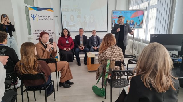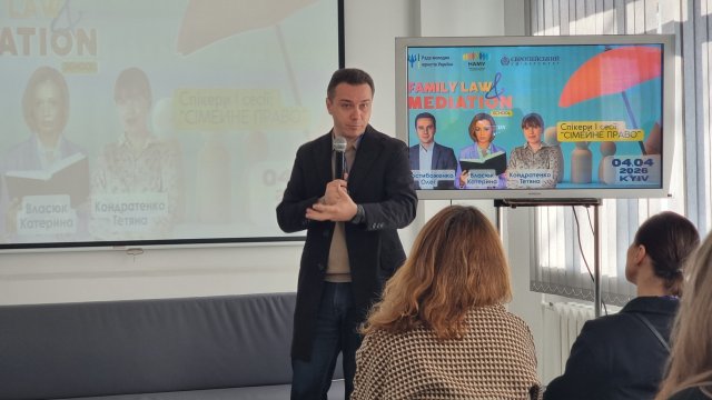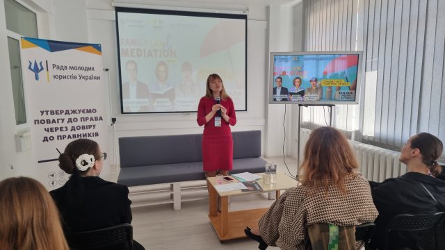 Захід розпочався з вітального слова Євгена КОТОРОБАЯ – голови Ради молодих юристів України, який подякував усім хто долучився до заходу і представив спікерів Школи. Наголосив на тому, що медіація є одним із найпопулярніших альтернативних способів врегулювання конфліктів у європейській та інших правових системах розвинених країн світу. Полягає у залученні посередника (медіатора) або третьої особи, які допомагають сторонам конфлікту дійти згоди, скомунікувати та проаналізувати ситуацію та самостійно обрати найоптимальніший варіант вирішення спору. У перекладі з латини це – посередництво. Фундамент медіації в національному законодавстві був закладений ще задовго до внесення суттєвих змін до процесуальних кодексів України у 2017 році, у вигляді мирової угоди. Відправною точкою втілення медіації в правову систему України став Указ Президента України «Про Концепцію удосконалення судівництва для утвердження справедливого суду в Україні відповідно до європейських стандартів», від 10 травня 2006 року № 361/2006, яким було запроваджено створення альтернативних, позасудових способів розв’язання спорів. У 2016 році почав діяти Державний стандарт надання соціальної послуги посередництва (медіації). 2019 році Міністром юстиції в Сінгапурі було підписано Конвенцію ООН щодо медіації. 22 квітня 2020 року Уряд схвалив проєкт Закону України «Про медіацію», а вже у листопаді наступного року його було схвалено. Тож на законодавчому рівні було визначено правові засади та порядок проведення медіації як позасудової процедури врегулювання конфлікту (спору), принципи медіації, статус медіатора, вимоги до його підготовки та інші питання, повʼязані з цією процедурою. Медіація, переважно, застосовуються у господарських, цивільних та сімейних відносинах. Звісно інститут медіації притаманний і кримінальному праву, але природньо, генетично, він сягає своїм корінням саме врегулювання цивільних та сімейних відносин. Сімейні спори, це одна з найпоширеніших категорій цивільних справ щодо: розлучення, поділу майна, визнання шлюбу, виховання та визнання місця проживання дитини, визнання батьківства, позбавлення батьківських прав тощо. Такі спори є не тільки складними, а й тривалими, які часто призводять до неможливості і небажання сторін досягти згоди; прогалини у цивільному та сімейному праві та їх колізії призводять до формування різної судової практики. Ось чому використання інституту медіації має стати ефективним, а головне зручним і зрозумілим способом вирішення сімейного конфлікту, можливо збереження сім’ї, налагодження дружніх стосунків між батьками і дітьми. Як відомо, міцна сімʼя – запорука міцної держави.